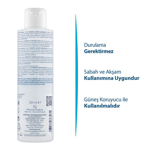 DucrayKeracnyl Lotion Purifiante 200 mlArındırıcı, gözeneklerin sıkı bir görünüm kazanmasına yardımcı tonik Ducray Keracnyl Lotion Purifiante, cildi temizler ve matlaştırır. Yağlı ciltler için önerilmektedir. Ürünün Faydaları