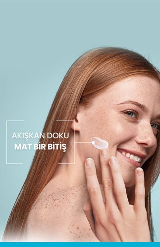 Yağlı ve düzensiz ciltler için güneşten korunmaya yardımcı güneş koruyucu.