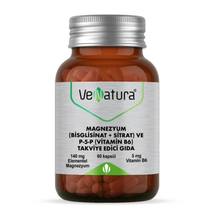 VeNatura Magnezyum (Bisglisinat+Sitrat) ve P5P (Vitamin B6) 60 Kapsül